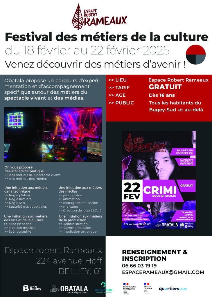 En clôture de cette semaine immersive, un concert à l’Espace Rameaux, le samedi 22 février 2025, viendra célébrer cette aventure collective, mettre en lumière l’univers du spectacle vivant et en musique les esprit échauffés.
